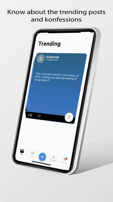 The App is for the students wherein they can post their views and conduct pools or event by tagging a particular person, committee, interest groups, sections or hostels. The App is the hub for discussion wherein all the users can comment and view the recent trending posts by various users.