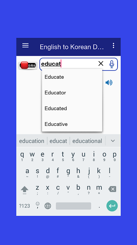 Английский на корейский и корейский на английский автономный словарь. Также покажите имеющуюся значимую картинку со значением слова.
