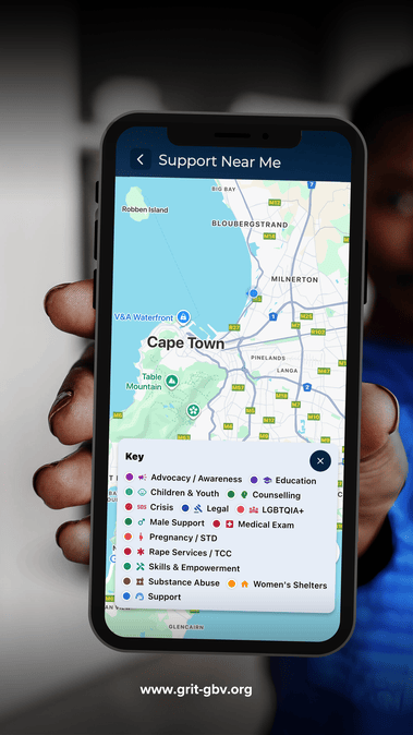 Услуги геолокации. Мгновенно находите ближайшие приюты, консультационные центры, юридические консультации, медицинские учреждения и полицейские участки. Наша обширная база данных поможет вам связаться с проверенными службами поддержки по всей Южной Африке.