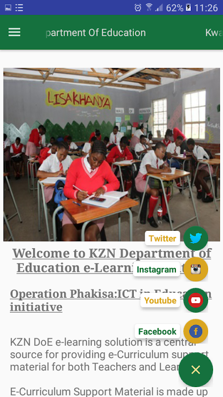 KZN DoE решение электронного обучения является основным источником для предоставления материальной поддержки электронной Curriculum как для учителей и учащихся. е-Curriculum Поддержка Материал состоит из DBE электронного контента, электронного учебного плана материала из QA ООР, а также подготовка учебных материалов, разработанных преподавателей и учебных планов должностных лиц