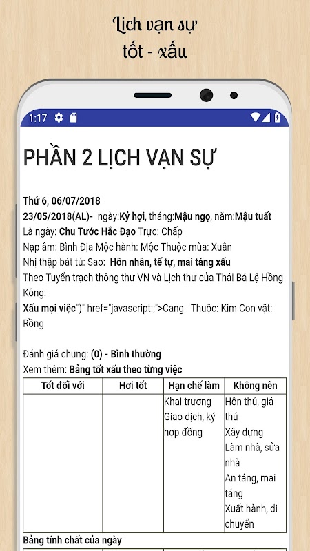 Информация Lịch Ông Đồ ngày giờ tốt xấu APK