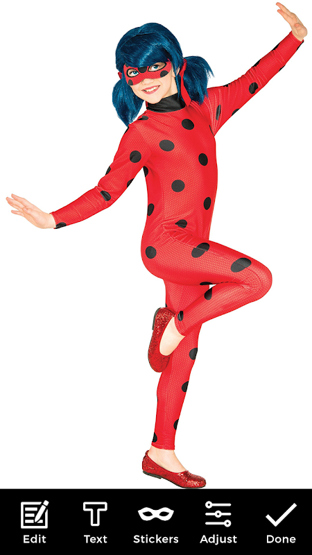 Thanks to this Ladybug photo editing software you can makeup and photo edit your selfies like a professionnal.You don't need to go to Halloween Makeup Salons .. all Ladybug Dress up Costumes are available for you.