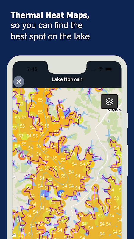 • Температура воды в режиме реального времени: отслеживайте температуру поверхности озера, чтобы отслеживать сезонные изменения и активность рыбы.