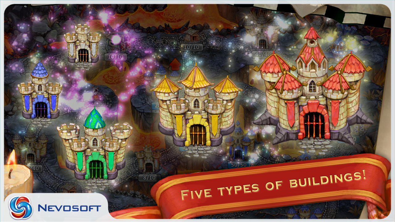 - Пять типов зданий с уникальными характеристиками для атаки или защиты от противника