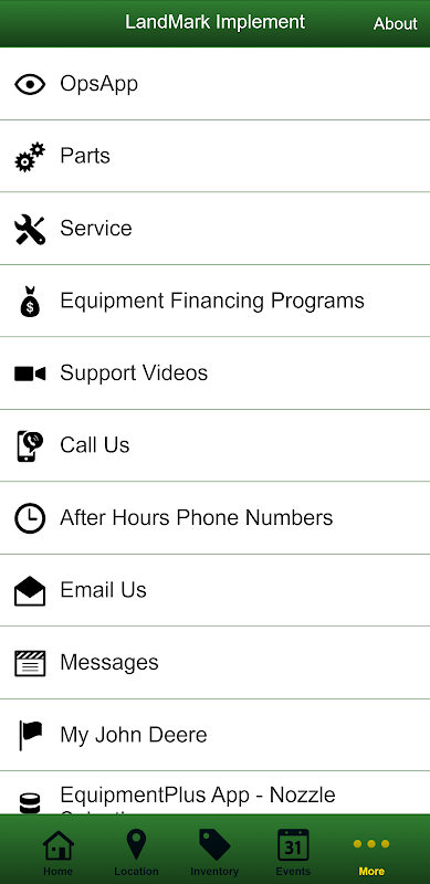 LandMark Implement — это ваш дилер полного ассортимента продукции John Deere с 17 офисами в Небраске и северном Канзасе. LandMark гордится тем, что строит доверительные партнерские отношения с нашими клиентами. Мы рекомендуем вам зайти в любое из наших мест, чтобы ощутить разницу LandMark! Посетите нас, чтобы узнать обо всех ваших потребностях John Deere, запасных частях, обслуживании, точном земледелии или продажах! С помощью этого приложения вы сможете просматривать наши запасы, запрашивать обслуживание, получать доступ к информации о деталях, получать поддержку для ваших продуктов точного земледелия и быть в курсе всех наших событий, распродаж, рекламных акций и многого другого.
