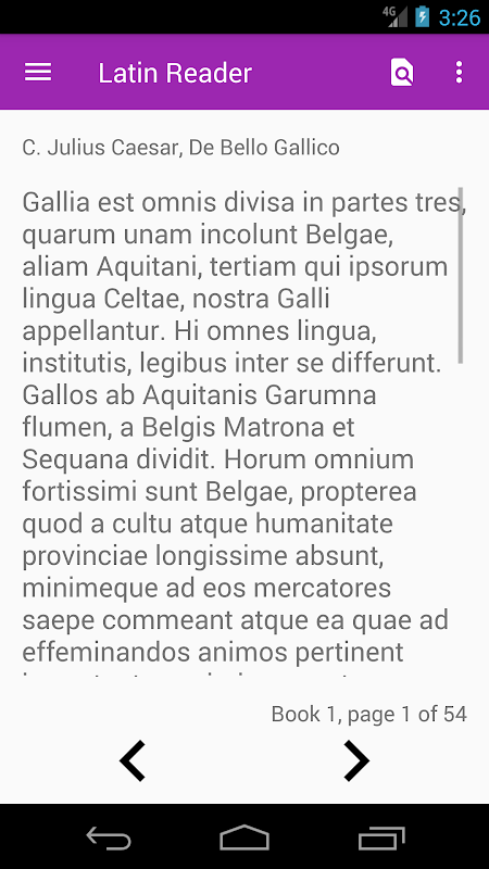 Латинское Считыватель содержит подборку известных классических текстов как в латинском и английском языках. Вы можете прочитать Цезаря галльской войны, Энеиды Вергилия, Овидия Метаморфозы, Петрония, Лукреция и другие на ваш телефон или планшет. Приложение Латинской Читатель включает в себя полный латинский словарь английского языка с более чем 17 000 записей.