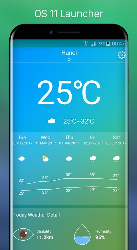 OS 11 launcher and themes is a beautiful application with a relatively simple design experience, users will enjoy the slide effect or see your phone look faster and class.