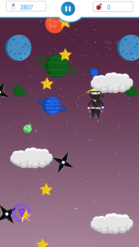 In another world where there is a lazy ninja who wears a jetpack in his back, you can find a touchable clouds that boosts the jumps to go up and discover the space.