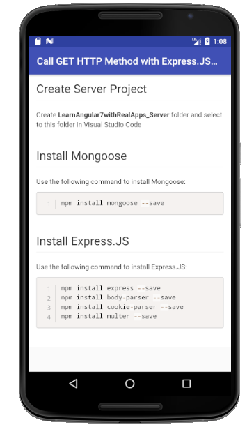 27. Вызовите метод GET HTTP с помощью Express.JS Web API и MongoDB на Angular 7.
