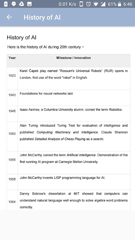 Это приложение даст вам общее представление об области Искусственного интеллекта. Если вы хотите узнать об ИИ, здесь вы должны начать.