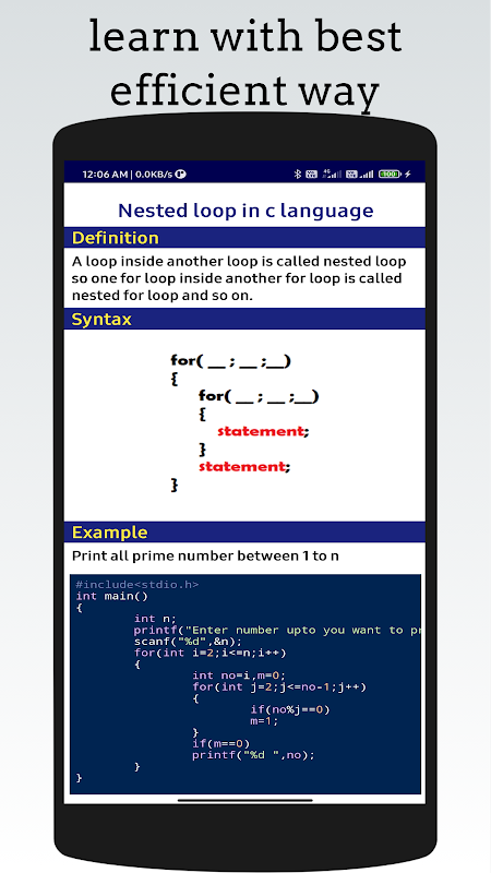 This is the only app in which you can learn the whole syllabus of C language with Tutorials ,programs and Interview questions and answers.