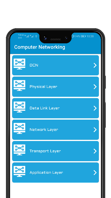 DCN, Physical Layer, Data Link Layer, Network Layer, Transport Layer, Application Layer.