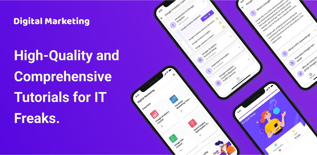 Овладейте навыками цифрового маркетинга с помощью бесплатного обучающего приложения Tutorials Freak по цифровому маркетингу. В этом приложении вы найдете подробное руководство, заметки, курсы, видео, викторины, сертификаты и многое другое.