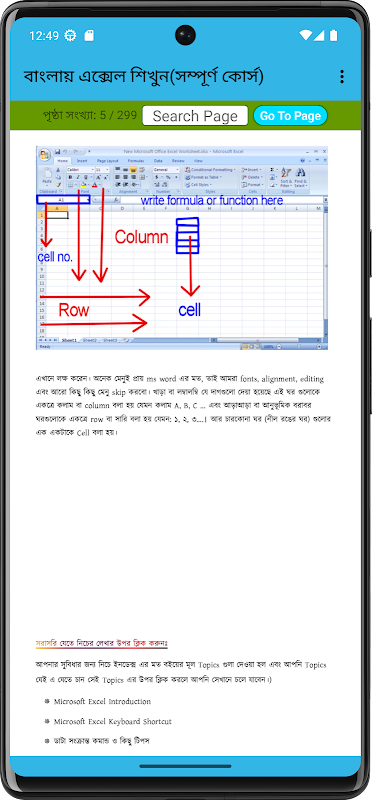 📚 এই অ্যাপে রয়েছে সুন্দরভাবে সাজানো একটি PDF Это, Microsoft Excel-এর বেসিক ফাংশন থেকে শুরু করে ফর্মুলা, চার্ট, ডেটা অ্যানালাইসিসসহ সবকিছু শেখানো হয়েছে।