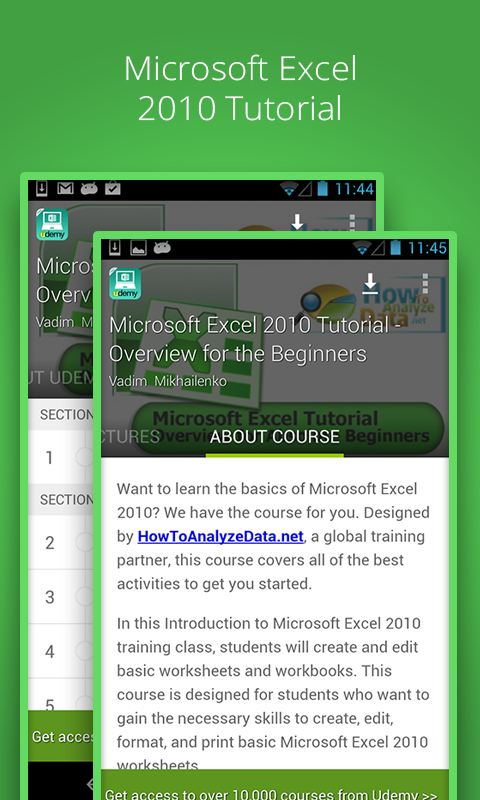 Install the "Learn Excel 2010 Free" app now and join over 4 million students who are already learning on Udemy.