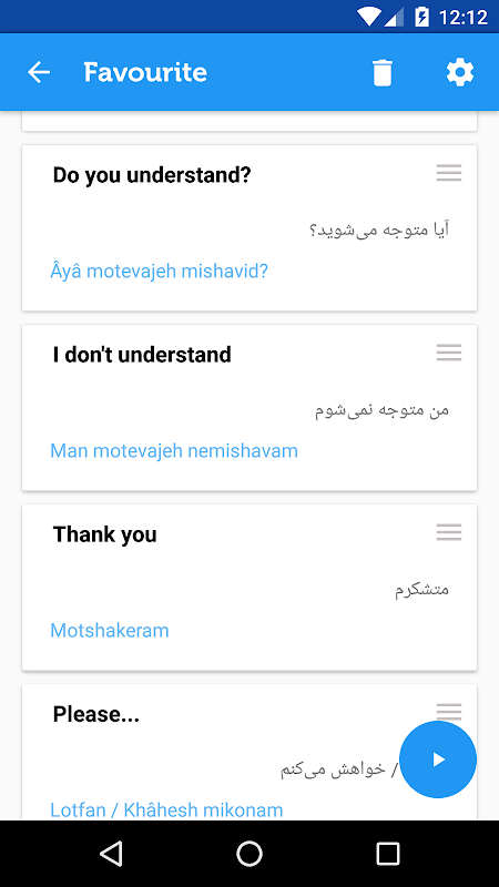 Lite версия содержит 300+ общие слова и фразы включены бесплатно. Получить Pro версию и разблокировать все 1600+ фраз в 20 категориях.