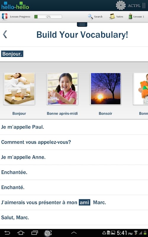 Hello-Hello, Французский является полноценным языковым курсом из 30 занятий, разработанных в сотрудничестве с Американским Советом по преподаванию иностранных Языков (ACTFL), поэтому вы можете быть уверены в том, что эти уроки следуют эффективной научно-исследованной методологии. Все уроки разговорного типа основаны на реальных диалогах и ситуациях, а не на списке внеконтекстных слов и фраз.