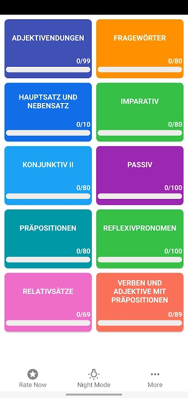 Это полноценное приложение поможет вам пошагово практиковать грамматику от A1 начинающего до C1 продвинутого, с более чем 50.000 грамматическими упражнениями (Deutsch Übungen) – всё бесплатно и доступно офлайн.