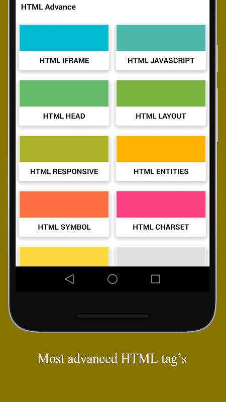 You can easily understand the html code tag with great interface and html code guide for beginners. After that you will easily understand the development of html. This app also covers the html5 advanced tag with brief description.