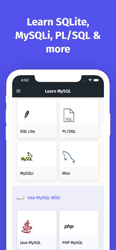 This is the complete path for becoming a MySQL Databases Expert. In this app you will master and learn MySQL and many related technologies like SQL, SQLite, PL/SQL, MySQLi and more. This app will also cover how you can use MySQL in your web apps like with Java and PHP and develop amazing websites. This app is completely ads free and you can access everything within this app without the need of internet. So this app is Offline and does not require internet at all. Also this app with start from the basics so you don't need to have any sql database knowledge at all. Although , Basic knowledge of PHP and Java will definitely help you while learning MySQL. You can checkout our Learn PHP & Learn Java Apps on the store.