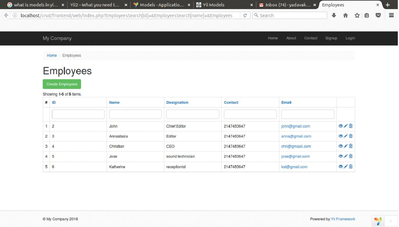Our YII tutorial includes all topics of such as YII Features , Upgradation, Installation, Data Structure, MVC, Sessions, Flash Data, Cookies, File Upload, etc