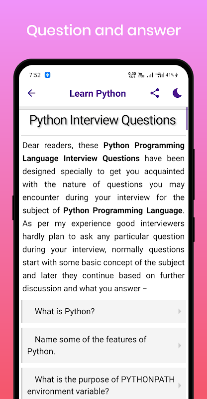 Если вы ищете приложение для изучения языка программирования Python Core Python, чтобы продвигать Python без каких-либо знаний программирования. Вы находитесь в правильном месте. Независимо от того, являетесь ли вы опытным программистом или нет, это приложение предназначено для всех, кто хочет изучить язык программирования Python.