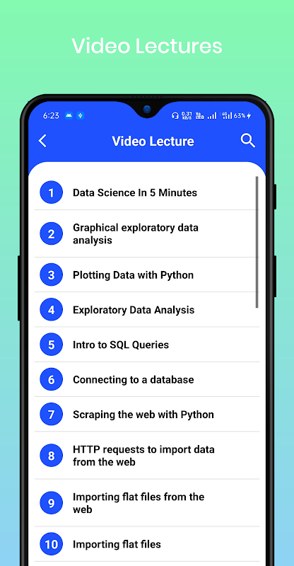 Learn Data Science с Python имеет действительно простой пользовательский интерфейс. это лучшее приложение, которое позволит вам бесплатно изучить язык программирования Python. Загрузите приложение сейчас, чтобы стать изучать Python и науку о данных.