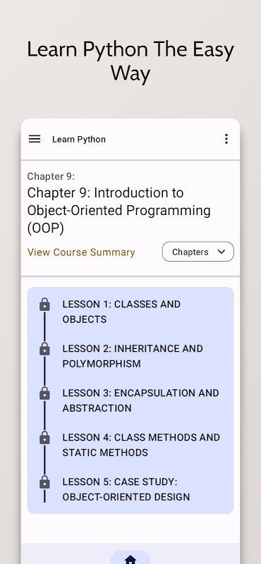 Благодаря интуитивно понятному интерфейсу и удобному дизайну Learn Python представляет собой привлекательную и интерактивную платформу для изучения основ Python. Погрузитесь в мир возможностей кодирования, отправляясь в путешествие по десяти тщательно проработанным главам. Каждая глава охватывает определенный аспект Python, постепенно расширяя ваши знания и помогая вам без особых усилий усвоить основные концепции.