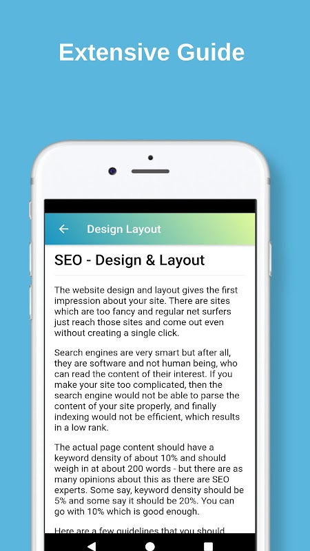 This app is designed to describe all areas of SEO—from finding the terms and phrases (keywords) that generate traffic to your website, to making your site friendly to search engines, to building links and marketing the unique value of your site.