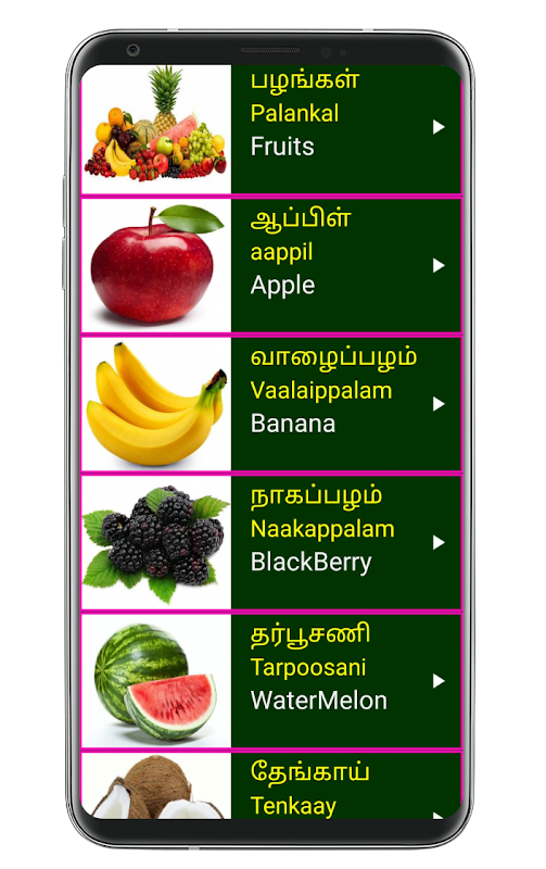2. Каждое тамильское слово имеет четкое изображение 📸🖼️ и аудио произношение 🎵🔊, что упрощает изучение тамильского языка с помощью английского языка.