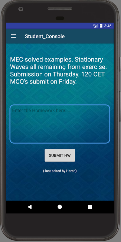 >Realtime Homework menu which displays the homework with its submission date