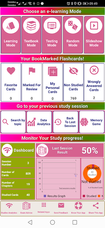 - 5 режимов обучения (режим обучения, режим тестирования, режим раздаточного материала, режим слайд-шоу и случайный режим).