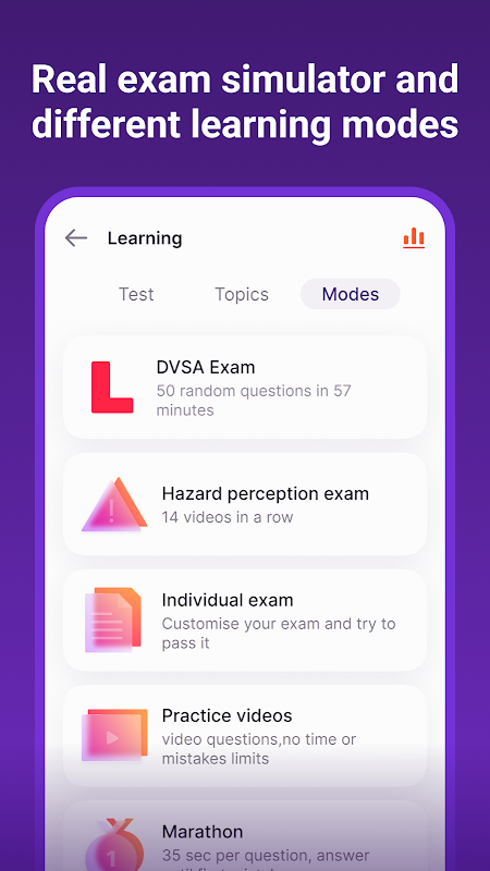 -Неограниченное количество пробных тестов: сдавайте столько практических экзаменов, сколько захотите, все они основаны на реальных вопросах DVSA. Наши пробные тесты имитируют реальный формат экзамена, поэтому вы будете полностью готовы.🥰