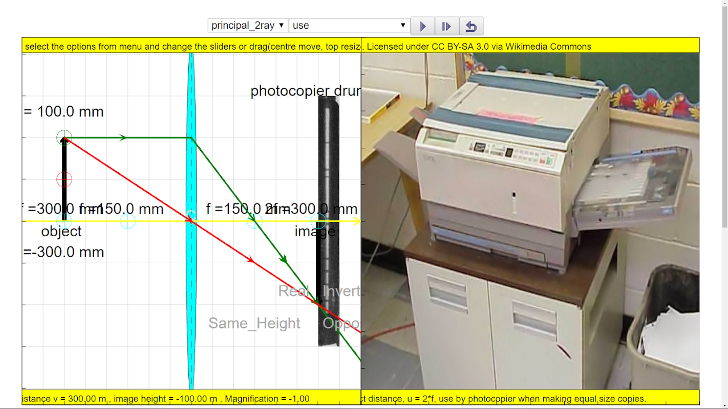 Это моделирование может позволить объекту быть на правой стороне линзы, что является намного сложнее, чем код типичного одностороннего объекта на левой стороне объектива. Он также поставляется будет усеяна световые лучи линий для виртуального изображения и сплошные линии для реальных изображений. Применение различных диапазонов длины фокусировки кодируются внутри симуляции тоже.