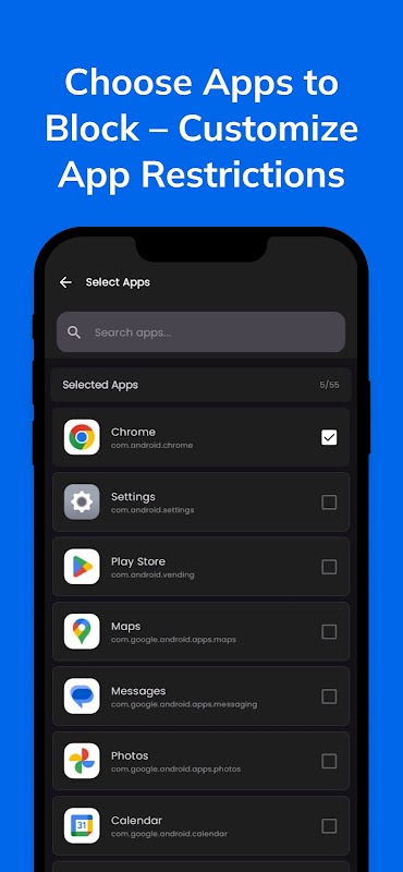 🔹 Гибкая блокировка приложений: блокируйте приложения на неограниченный срок или создавайте собственные графики блокировки. Идеально подходит для рабочих сессий, учебы, сна или общего контроля экранного времени.
