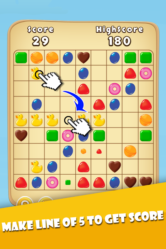 Вам нужно передвигать конфеты одного цвета, чтобы составить горизонтальные, вертикальные, диагональные линии из 5 конфет или более. Чем больше конфет в одной линии, тем больше очков вы получите.