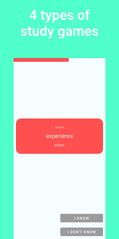 Наше приложение с карточками также имеет режим «Знай это», мощный инструмент для проверки вашего понимания и оценки вашего прогресса. Испытайте себя, пролистывая карточки и отмечая уровень уверенности для каждой из них. Приложение адаптируется к вашей производительности и фокусируется на карточках, которые вам нужно просмотреть больше всего, обеспечивая эффективное и целенаправленное обучение.