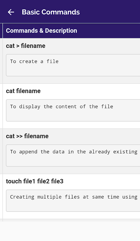 This app is designed to allow user to get quick information about Linux Commands.