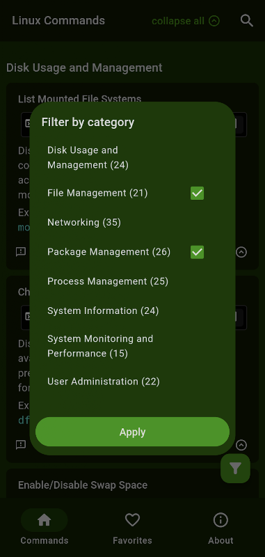 Команды Linux предназначены для пользователей Linux всех уровней. Если вы хотите выучить новые команды, вспомнить забытые или просто нуждаетесь в краткой справке, это приложение поможет вам.