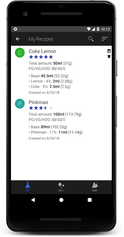 - Вся информация с первого взгляда: общее количество, отношение PG / VG / H2O, основание и ароматизатор в миллилитрах и граммах