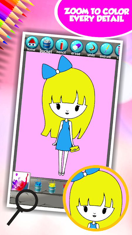 Наблюдайте, как самый симпатичный человечек защищает себя и своего друга, лягушка образует дождь с одним огромным листом. Она такая милая, что ее фотография может растопить даже самое холодное сердце. Что вас волнует, так это то, что теперь вы можете украсить ее верхним эскизом, и это всего лишь один клик от вас. Так что не стесняйтесь, но скачайте бесплатно новейшее приложение Little Girl Coloring Book и нажмите на краску с самым крутым оттенком, чтобы применить его. Дети будут поражены этой игрой, которая будет развлекать их в течение нескольких часов. Пусть они играют на вашем телефоне и выражают свое творчество замечательным способом, используя иллюстрацию сенсационного малыша с прекрасными косичками, улыбающимися и держащими ведро в одной руке и тонкий цветок в другой. Используйте их произведения искусства как сказочные украшения для вашего планшета, и вы будете выделяться из толпы с ним. Каждый влюбится в красивые рисунки из популярной маленькой девочки-раскраски.