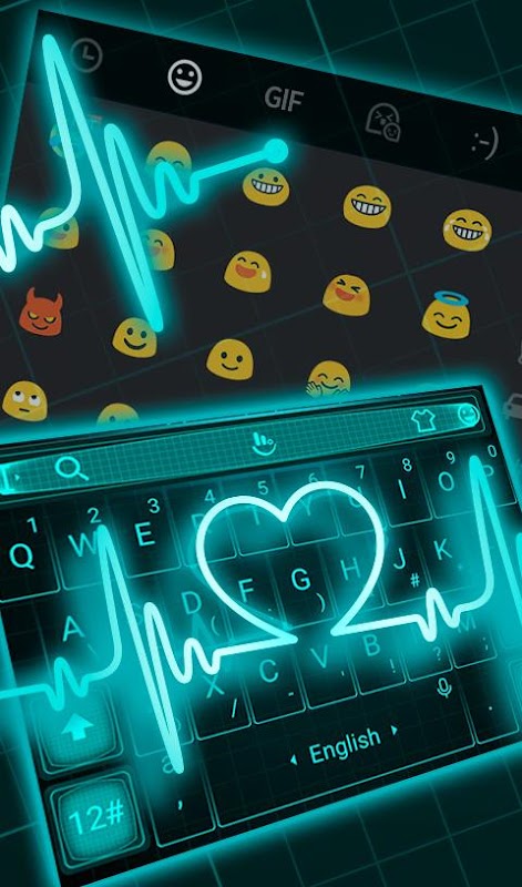 This stylish keyboard will also turn a plain keyboard into a pretty and unique one. Your keyboard looks totally different with this colorful keyboard. Download this keyboard theme and try it out! Live neon blue heart theme only works with Touchpal keyboard installed on your phone.