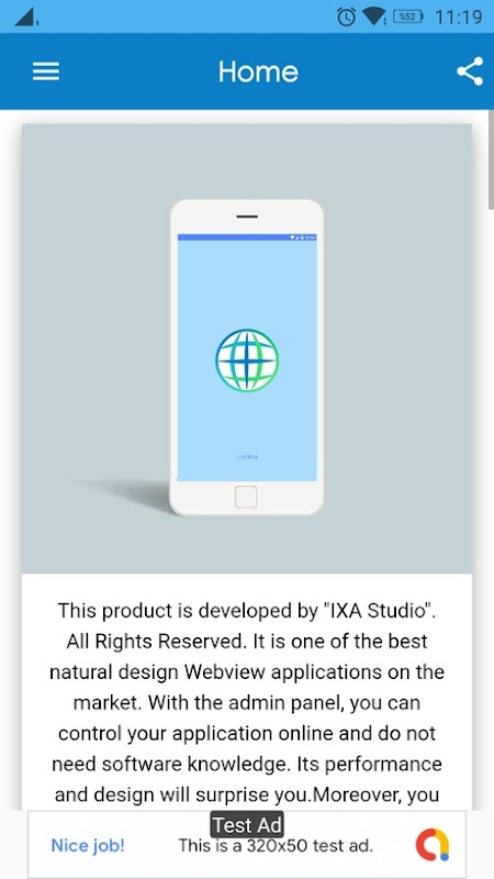С помощью «Liveweb» вы можете преобразовать свой мобильный веб-сайт и веб-приложения в приложение для Android. Этот шаблон поддерживает все веб-сайты и приложения. (HTML, PHP, Wordpress, Opencart и другие сайты электронной коммерции, HTML5-игры, Flash-игры, видео, изображения, радио-сайты / веб-приложения и многое другое…). Этот шаблон соответствует всем правилам Google Pay Store. Я гарантирую 100% одобрение Google Play Store. Если возникнет проблема, я гарантирую, что вы бесплатно разместите свое приложение в магазине. Используйте этот шаблон, разработанный студией Android для своих веб-сайтов, и почувствуйте себя нативным приложением. Если вы хотите внести изменения в свои приложения, просто войдите в панель веб-администратора и примените изменения. Это изменение появится в вашем приложении через несколько секунд. Не нужно отправлять обновления в Google Play Store после каждого изменения! Не требуется кодирования, не требуется плагин, не требуется хостинг для панели администратора. Предлагаю лучшее решение для вас.
