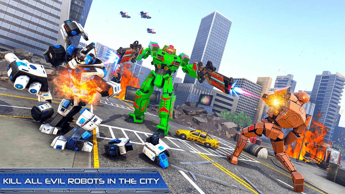 Ящерица робот автомобиль атаки симулятор город буйство на основе трансформации игры роботов, которые развлекают вас, предоставляя лучшие возможности робота военных игр. Выберите мощный преобразующий робота и раскрыть свои смертельные роботизированных силы в лучших роботов игры. Геймплей этой игры заключается в том, чтобы превратить автомобиль в робот и робот ящерица города волнение робота преобразующей ящерица, которая атакует роботизированный город в злых роботах съемки игре с супер роботизированными полномочиями.
