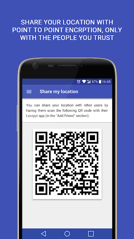 Para poder hacer tu grupo seguro sólo tendrás que mostrar tu llave QR de encriptación a tus personas de confianza, las cuales lo escanearán con su app Locrypt para ingresar a tu círculo de confianza. ¡Más fácil, imposible!