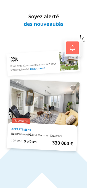 Кто говорит новое приложение, тот говорит новый интерфейс! Мы переработали Logic-Immo, чтобы сделать поиск более простым и эффективным. Прямой доступ к последним объявлениям о ваших записанных поисках, быстрая связь с профессионалами в сфере недвижимости для планирования ваших посещений и все более актуальные критерии поиска.