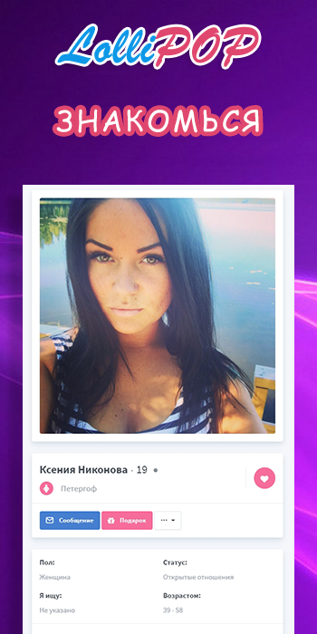В Lollipop большая база одиноких людей, которые жаждут вашего общения, приятных встреч и душевных разговоров.