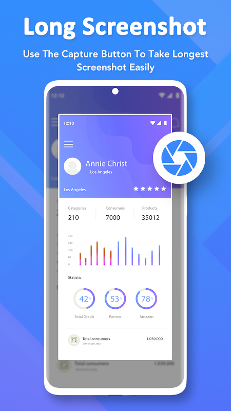 Приложение Full Screen Capture, вы можете сделать снимок экрана, нажав плавающую кнопку