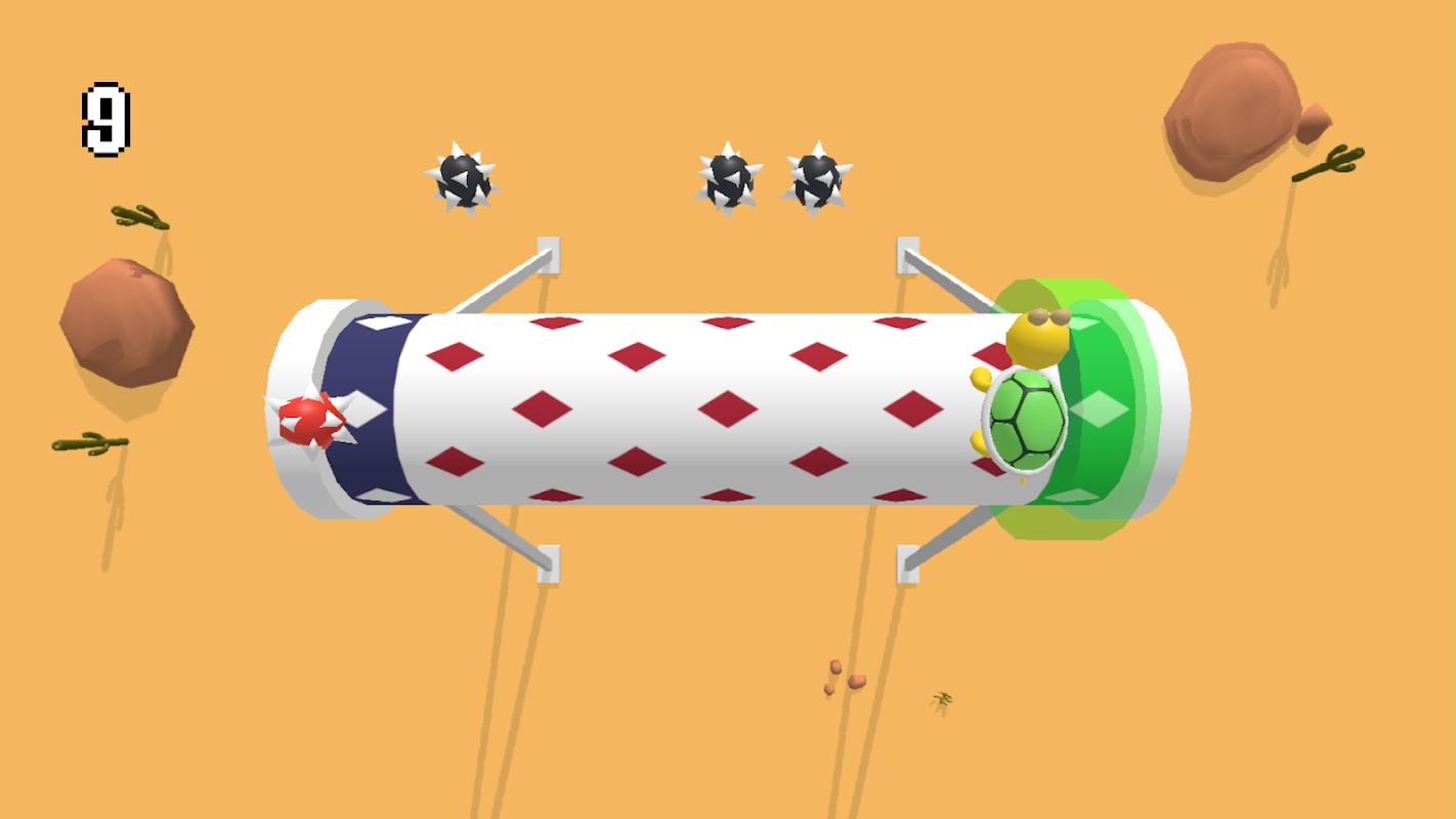 Управляйте крошечной черепашкой на трёхмерном цилиндре. Ваша задача? Нажимайте влево или вправо, чтобы прыгать, собирать светящиеся зелёные кольца и уклоняться от смертоносных вращающихся шипов. Одно неверное движение — и игра окончена!