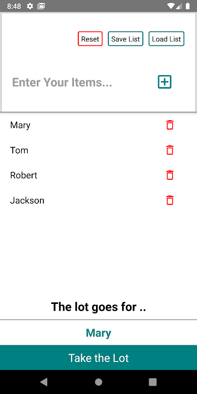 Lot selector is a very easy to use app where you can pick random values from your own inputs. The inputs can be anything such as names, numbers, decisions, etc.